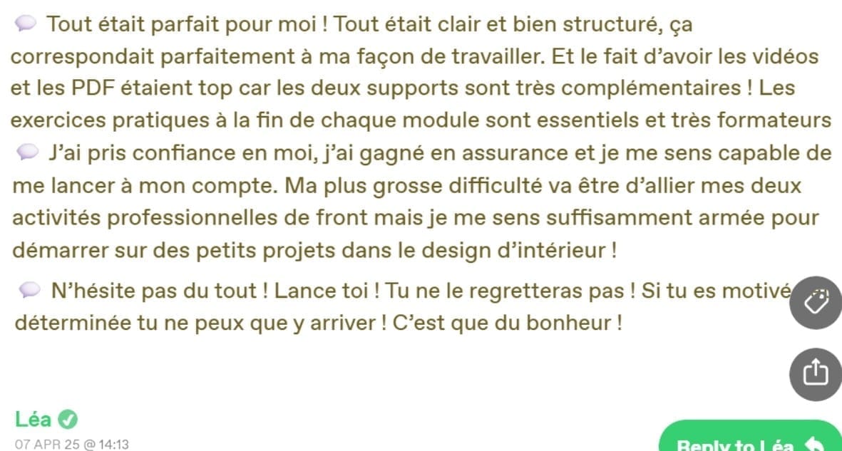 Depuis 2022, j’accompagne des femmes à se reconvertir dans le métier de designer d’intérieur :